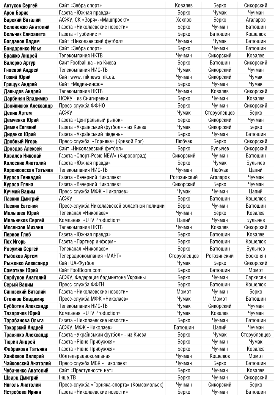 В традиционном журналистском опросе «Николаевских новостей» и Николаевской областной ассоциации спортивных журналистов участвовали 55 сотрудников средств массовой информации. В списке лучших фигурировали 17 игроков, выступавших в МФК «Николаев» на протяжении года. Лучшим футболистом впервые признан нападающий Виктор Берко.