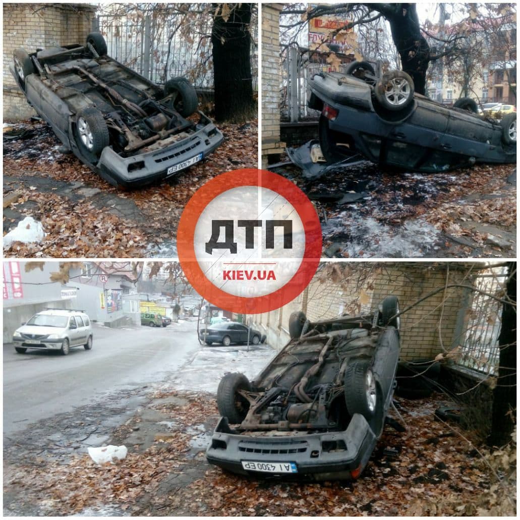 “Не ДТП, а просто акт вандализма. Вчера еще была на колесах. Перекресток Кривоноса-Лобановского, спуск к гаражам”, – прокомментировали событие в сети.