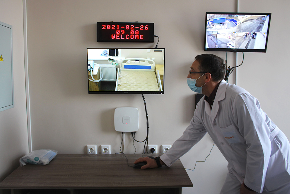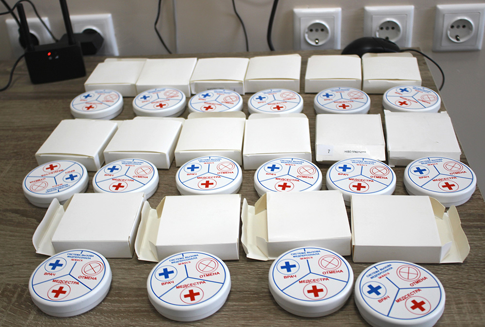 Уже функционирует система дистанционного вызова медицинского персонала. В частности, в палатах и санузлах предусмотрены кнопки вызова, сигнал от которых поступает на установленные на постах отделений экраны и на специальные наручные часы для медработников. Также внедрена система связи между врачами с помощью многорежимных портативных раций.
