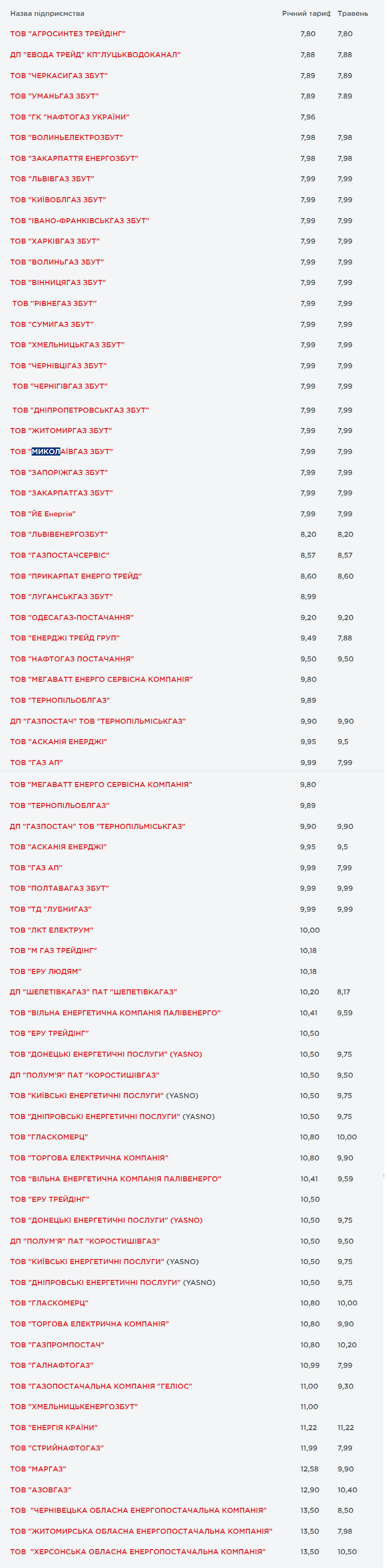 Ряд региональных газсбытов, в том числе и «Николаевгаз сбыт» обнародовали единую цену в 7,99 грн за кубометр.