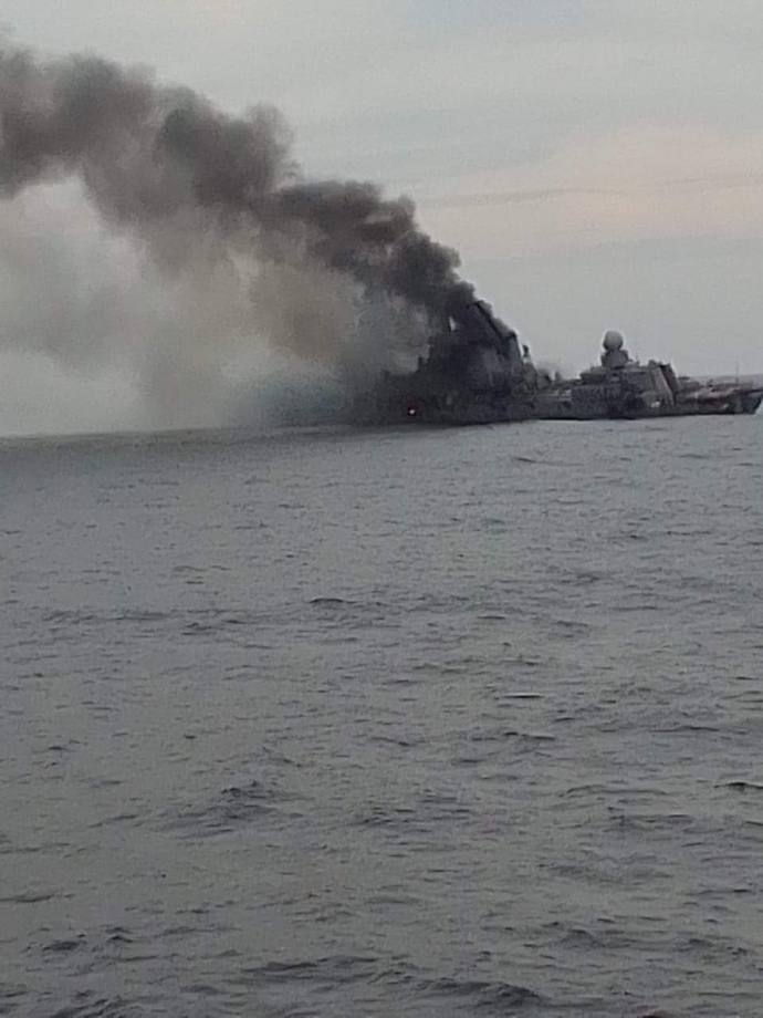 В сети появились фото подбитого и горящего крейсера "Москва"