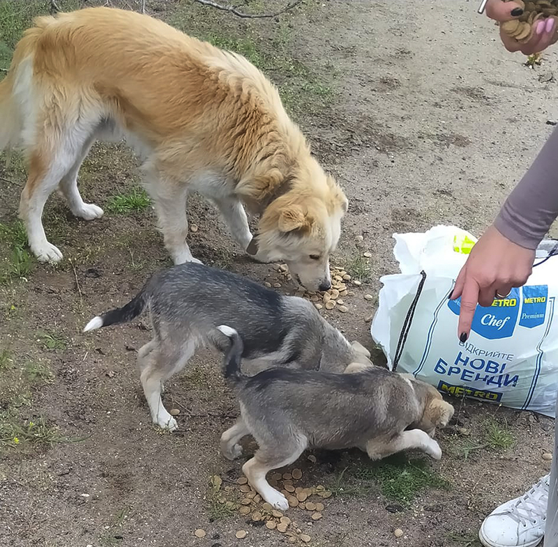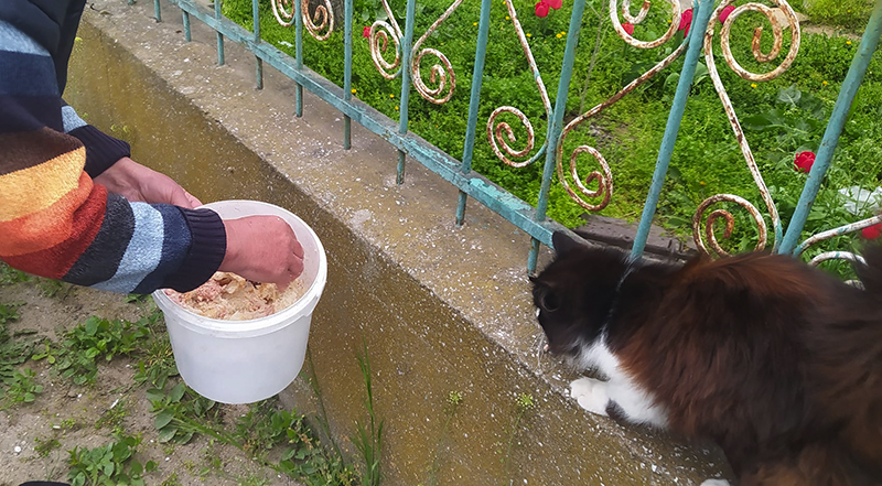 Здесь не бросают в беде не только людей. А и животных, хозяева которых, не выдержали напряга войны, и уехали. Домашних и бездомных «хвостиков» подкармливают по мере возможности.