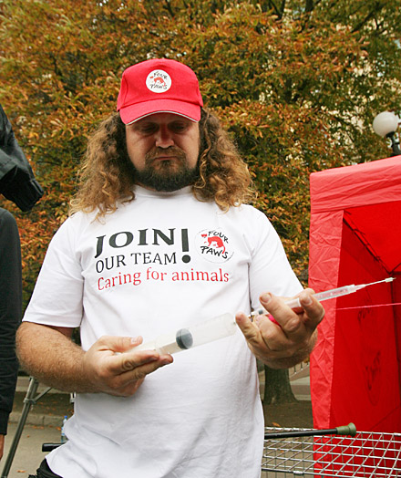 Амир Халил подарил Владимиру Чайке футболку волонтера «Четырех лап», которую мэр тут же примерял. Городской голова подчеркнул, что жить и питаться в Николаеве волонтеры будут за счет принимающей стороны, но из городской казны на это не израсходуют ни копейки - только деньги благотворителей. Кстати, один из волонтеров оказался в центре внимания. Ивайло из Болгарии продемонстрировал оружие современных «шариковых» - духовое ружье и дротик-шприц со снотворным. Однако необходимость в их использовании есть не всегда: больше половины псинок колоритный болгарин ловит... голыми руками!