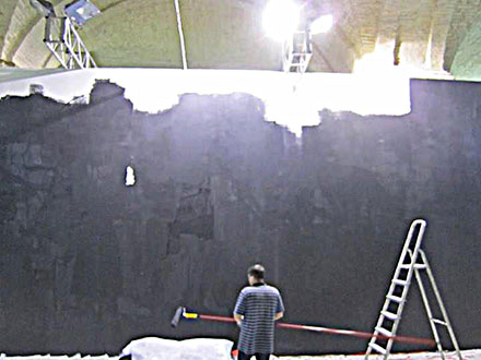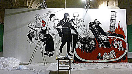 Кроме того, говорит куратор Арсенала, перед началом работы художник не представил эскиз своего будущего произведения, отметив, что работает без предварительной разработки материала. В результате финальный вариант мурала значительно отклонился от определенной им темы проекта.