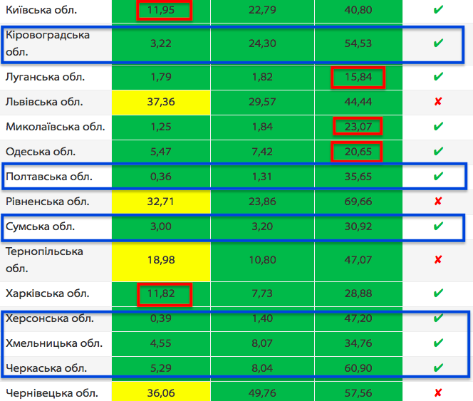 Итого: остается семь областей Украины, которые подходят под все критерии Минздрава, за исключением нового четвертого. Там пока ужесточения карантина ждать не стоит. Это:
