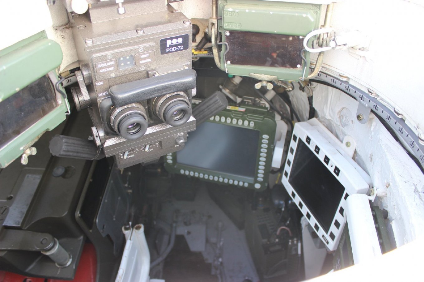 На них можно увидеть замененный штатный прицел Т-72, выдающий в этом танке последнюю польскую модернизацию T-72M1R. Она отличается новым тепловизионным прицелом, приборами ночного видения, цифровой системой связи и новой системой запуска двигателя.