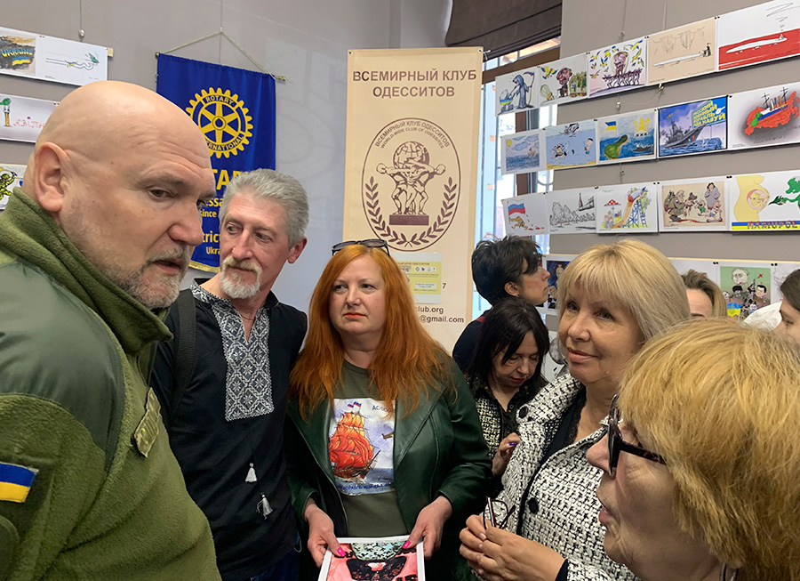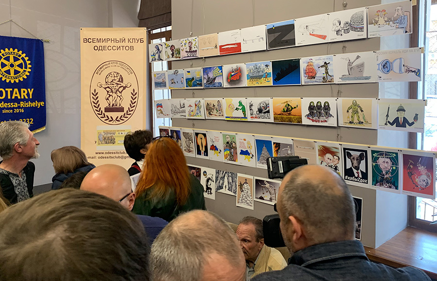 Здається, ініціатор та організатор експозиції Ротарі-клуб «Одеса-Рішельє» у співдружності з Клубом одеських карикатуристів та Гільдією власкорів Одеси не очікували такого інтересу. Чи є місце для посмішок війни?