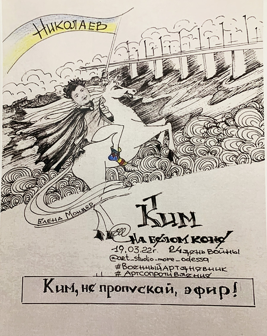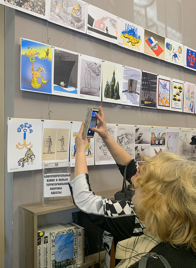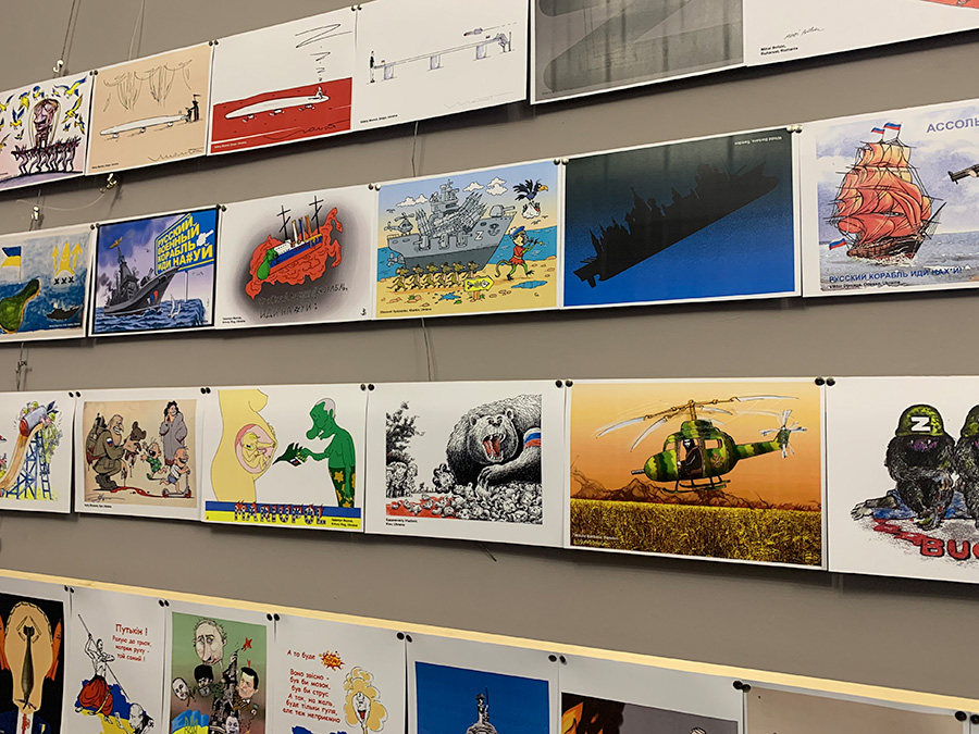 В Одесі з величезним успіхом відбувається міжнародна виставка політичних та антивоєнних карикатур «Російський військовий корабель, йди нах*й!». Цю тему творчо розвинули та доповнили чотирьох десятків художників-карикатуристів з Ізраїлю, Польщі, Греції, Німеччини, Білорусі, Румунії, Індії, Швеції, Нідерландів, США, України, Франції, Австрії та навіть Росії.