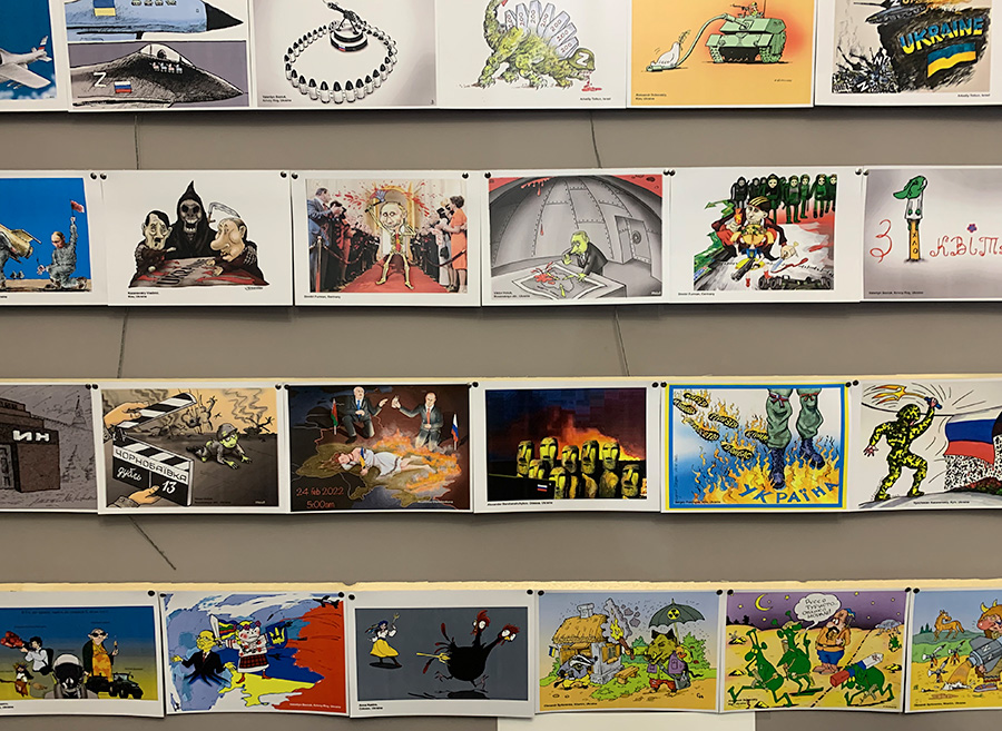 На виставку було відібрано близько двохсот робіт маститих карикатуристів та зовсім юних обдарувань. Частина художників вказала своє авторство, інші – з РФ – ретельно шифрувалися. Адже за подібне на батьківщині їх запроторять за ґрати.