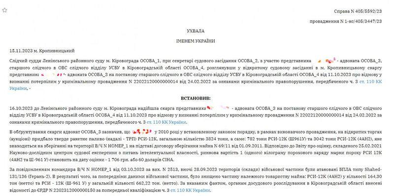 Реєстр судових рішень дозволяє не лише відслідковувати ланцюги постачання між оборонними підприємствами за рахунок судових справ через невиконання зобов'язань. А часом й оцінювати результат ударів. Справа №405/5592/23: