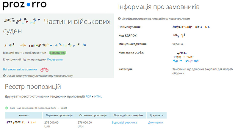 Приклад тендеру, всі публічні дані власноруч цензуровано